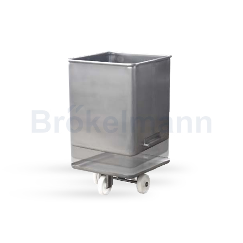 Made of stainless steel AISI 304, 2 mm thick sides, reinforced corners of upper edge rim, 2 slides, base with 4 tillting wheels.