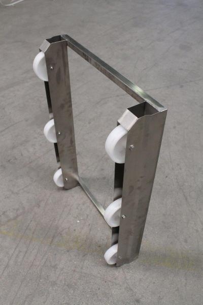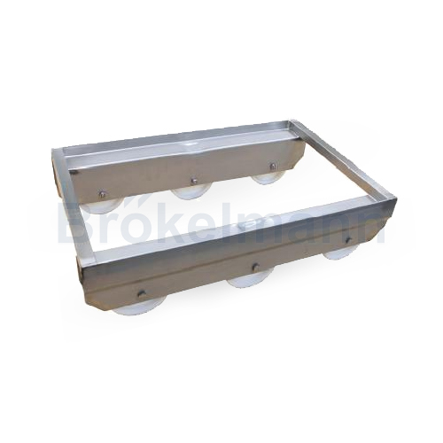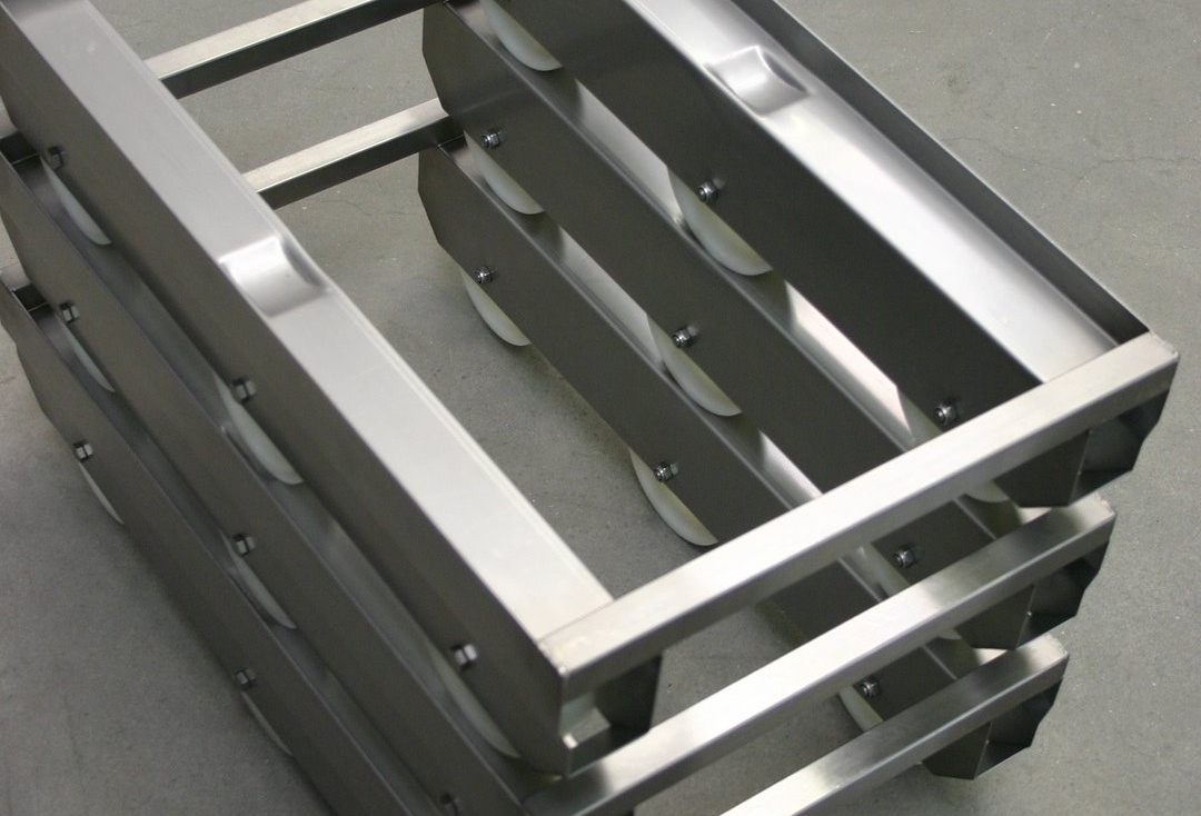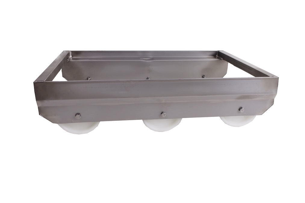 Made of stainless steel AISI 304, dedicated for EURO containers 400 x 600 mm, plastic or rubber wheels, for one or two EURO containers, version with reinforced bars.