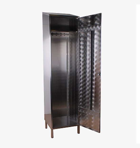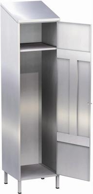 AISI 304, adjustable plastic feet, slanted roof, bolt lock with key, with shelf.
