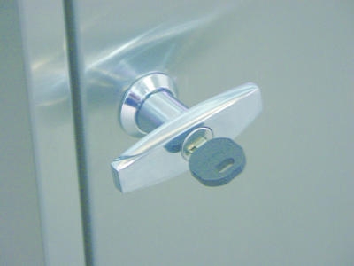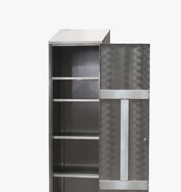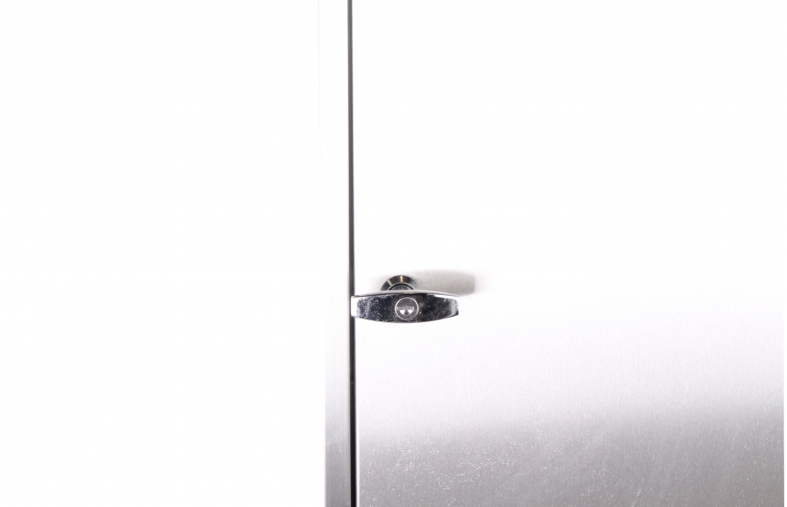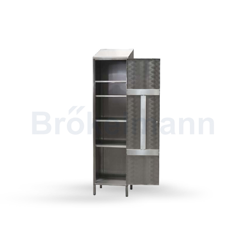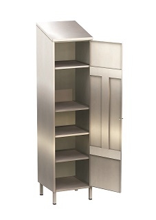AISI 304, adjustable plastic feet, slanted roof, 4 shelves (3 with adjustable height), bolt lock with key, with shelf.