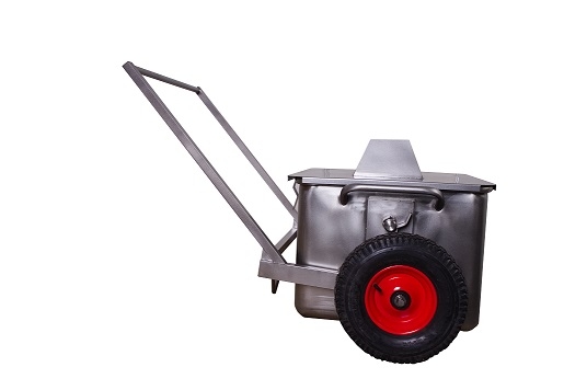Made of stainless steel AISI 304, 2 rubber wheels, lid with inlet hole.