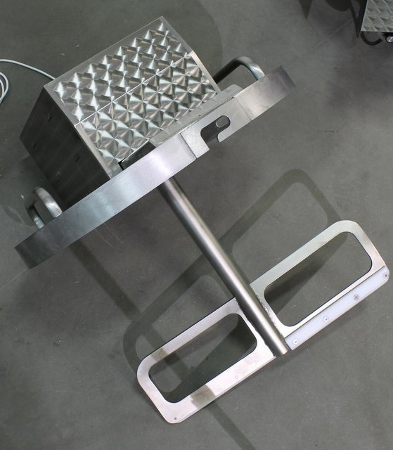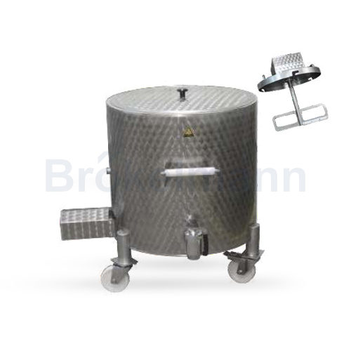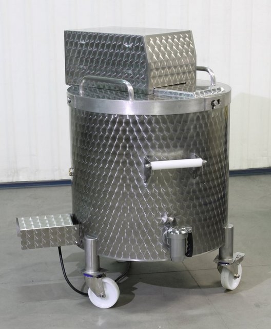 Made of stainless steel AISI 304, grained surface, dihedral with glycerine filling, without heat insulation, 400V power supply, valve 1 1/4”, version on wheels.