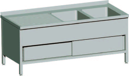 Made of stainless steel AISI 304, drainer on left or right, with bottom shelf, grid or cabinet.