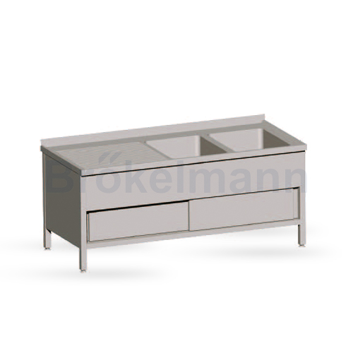 brokelmann.eu / Offer / Sinks / Single or double chamber sink with shelf, grid or cabinet