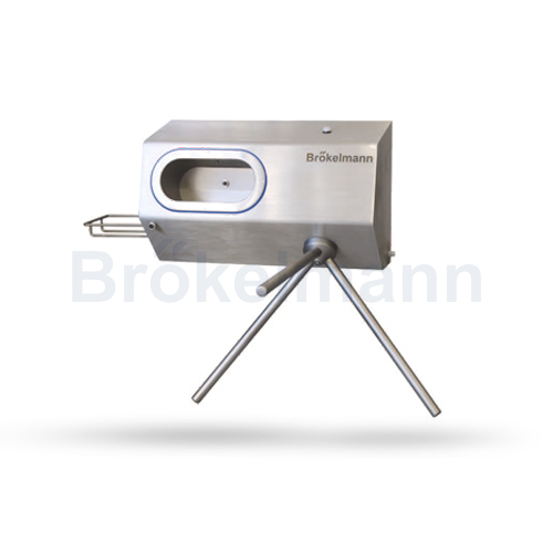 Aus Edelstahl 1.4301 (304), Oberfläche Mattschliff, Stromanschluss 24V / 230 V (50/60Hz), 0,1 kW, wändhängend oder stationär, Drehkreuz links oder rechts montiert, optional in zwei Laufrichtungen nutzbar.