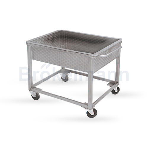Made of stainless steel AISI 304, grained surface, with handle, 4 wheels (2 fixed and 2 swivel)