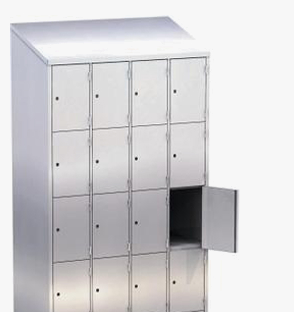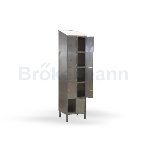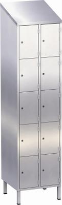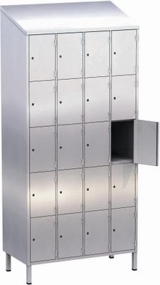 AISI 304, adjustable plastic feet, slanted roof, door cylinder.
